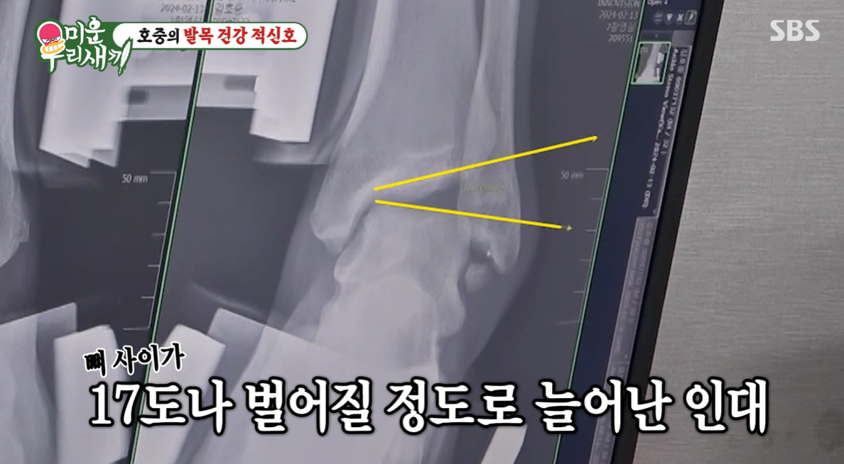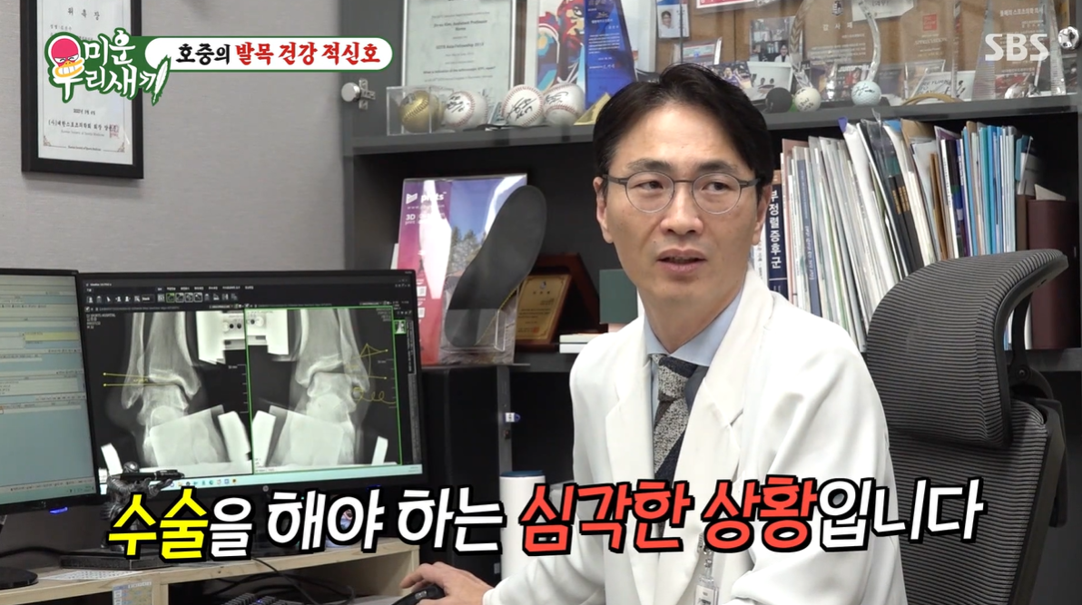 의사는 발목이 삐면서 부딪히면 염증 반응 때문에 계속 뼈가 자라게 된다면서 수술을 해야 하는 심각한 상황이라고 전했습니다.